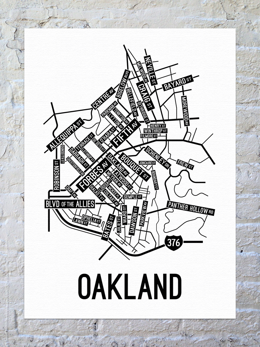 Oakland Pittsburgh PA Map Pittsburgh Map Company Etsy Israel